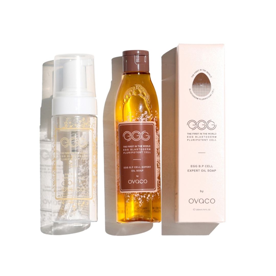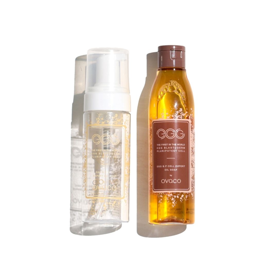 コラーゲンとエラスチンの生成を増やす世界初の卵殻幹細胞培養上清液を使用したオイルソープです。